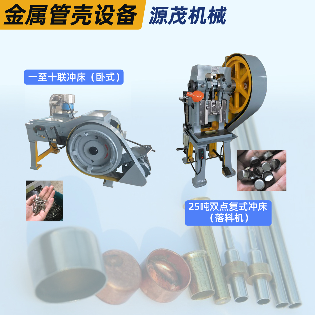 一至十聯(lián)沖床和雙點復式?jīng)_床(落料機)是金屬管殼專用的生產(chǎn)設備,點擊進入產(chǎn)品展示頁面瀏覽聯(lián)沖床技術(shù)參數(shù)說明